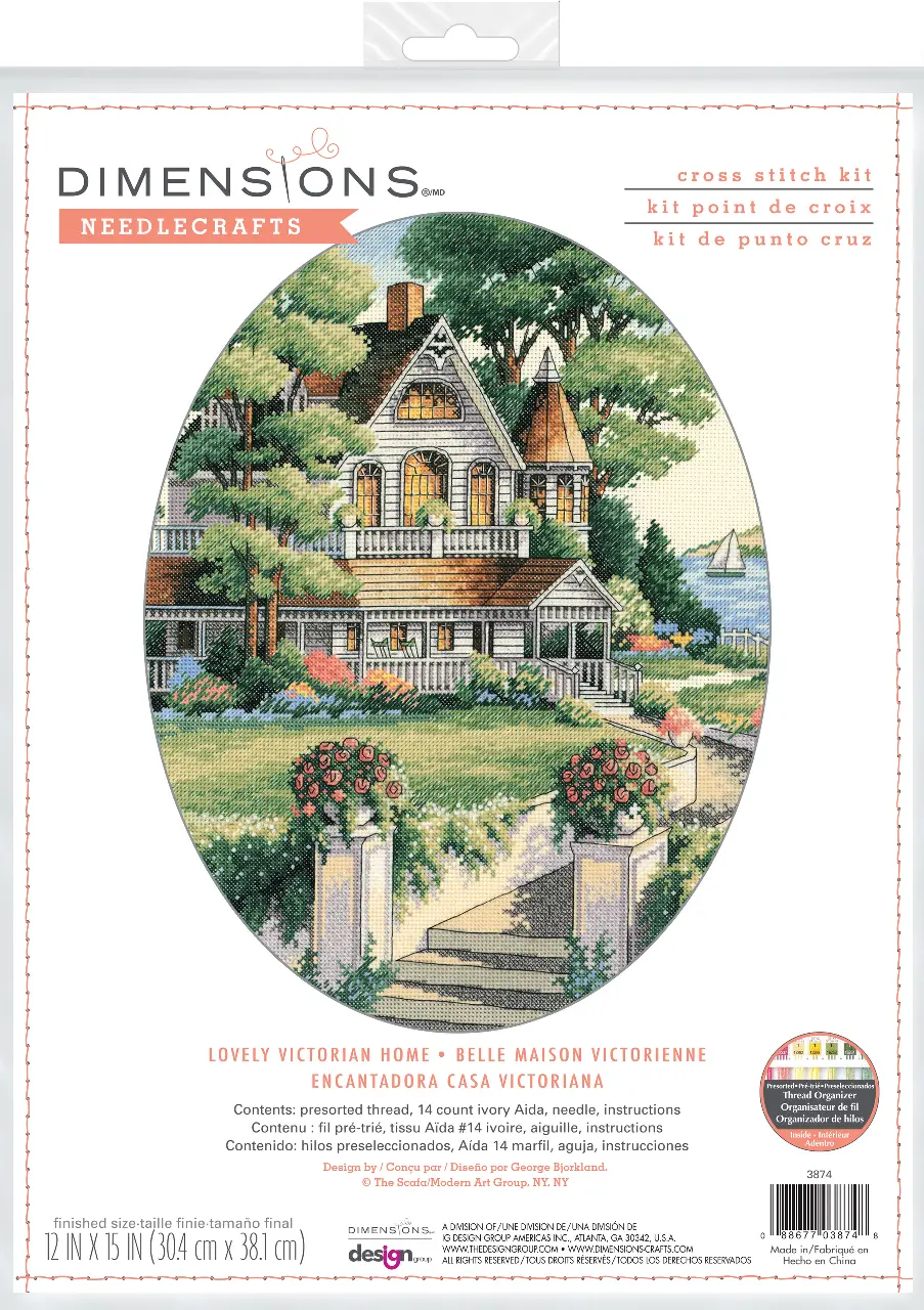 03874 Набір для вишивання хрестом Lovely Victorian Home Вікторіанський будинок, 30*38см, DIMENSIONS. Catalog. Kits