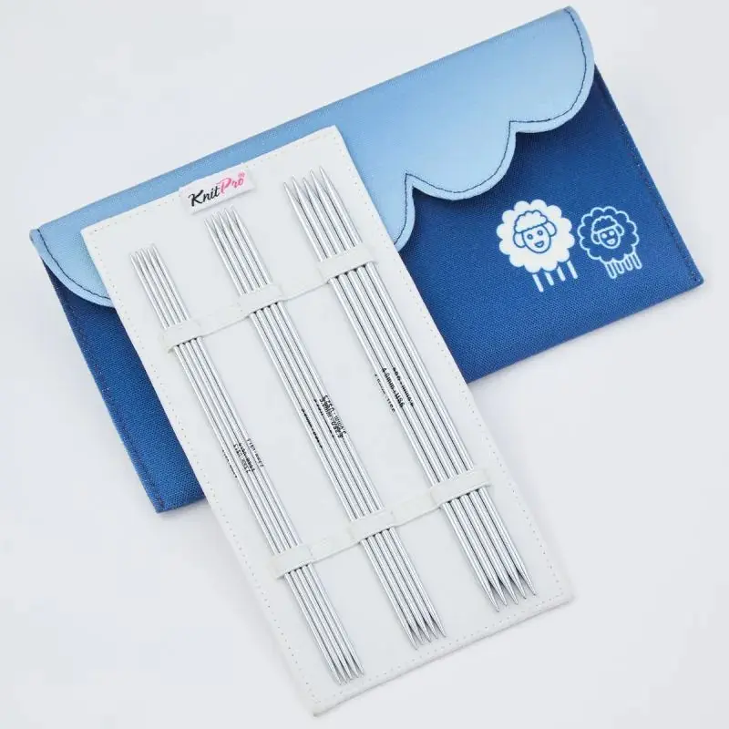 Nova Double Pointed Needle Sets are crafted from shiny brass metal. The smooth surface and precise tips are preferred for sock knitting, for sweaters and larger circumference projects.