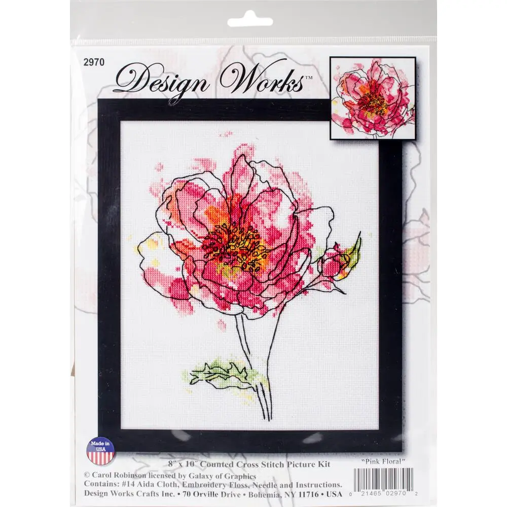 The set includes: canvas for embroidery Aida 14 ct white color; moulin thread (100% cotton); needle; scheme for embroidery;