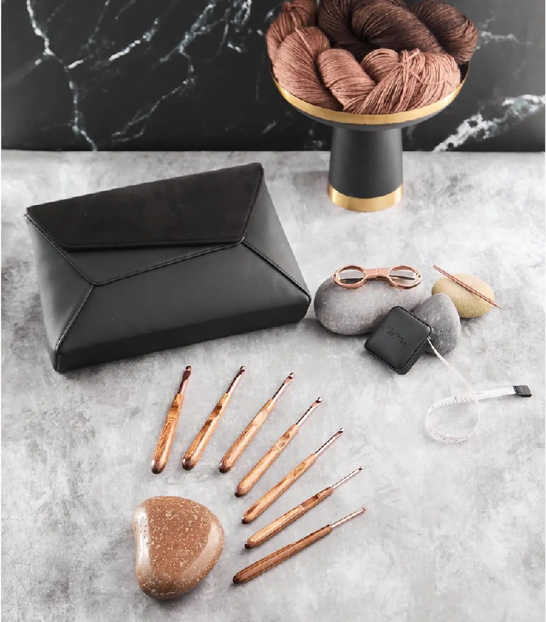 Accessories: Wool Needle, Scissors, Tape Measure, 10 Metal Stitch Markers.