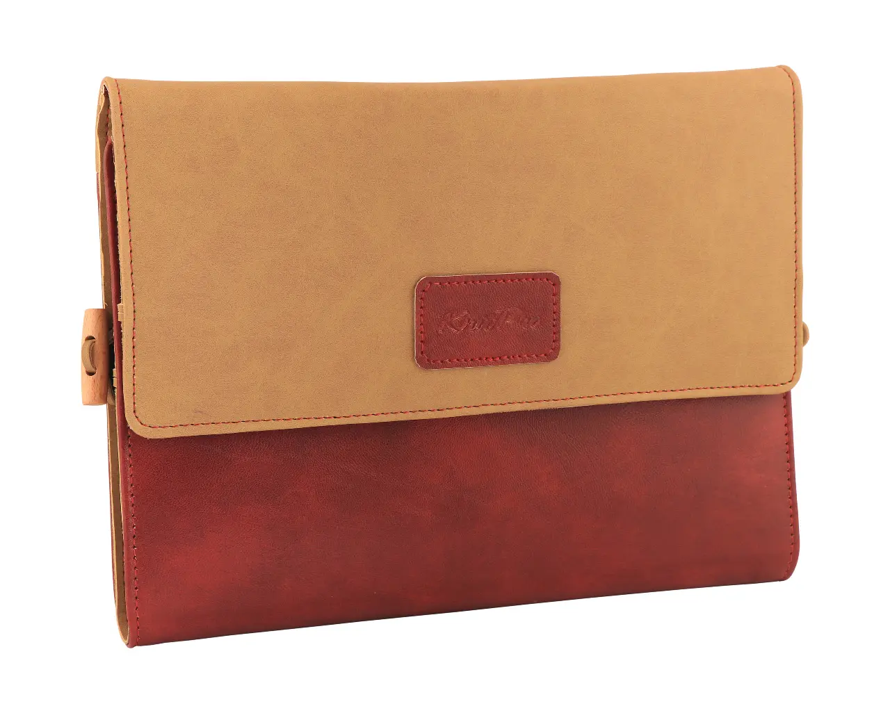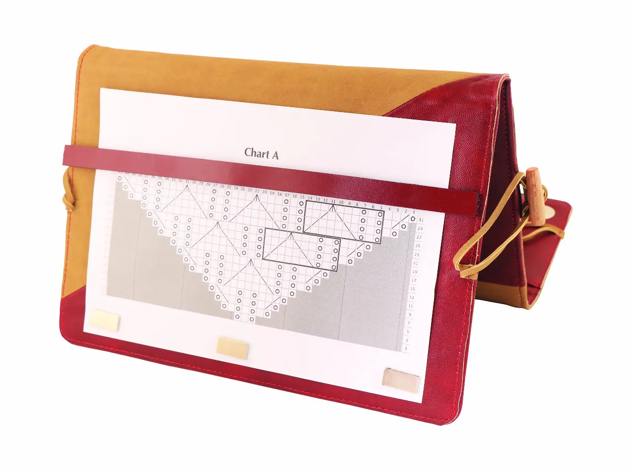 Packaging: Premium needle case in burgundy & beige finish with chart keeper