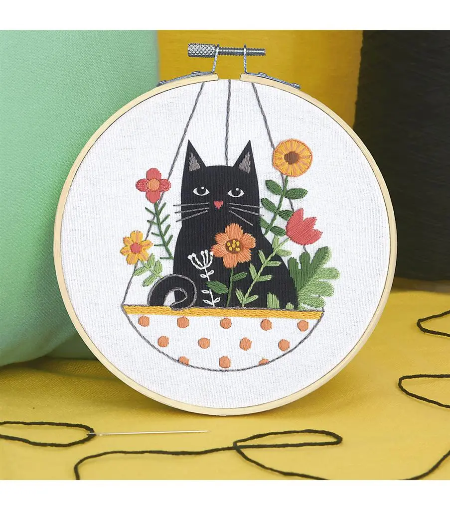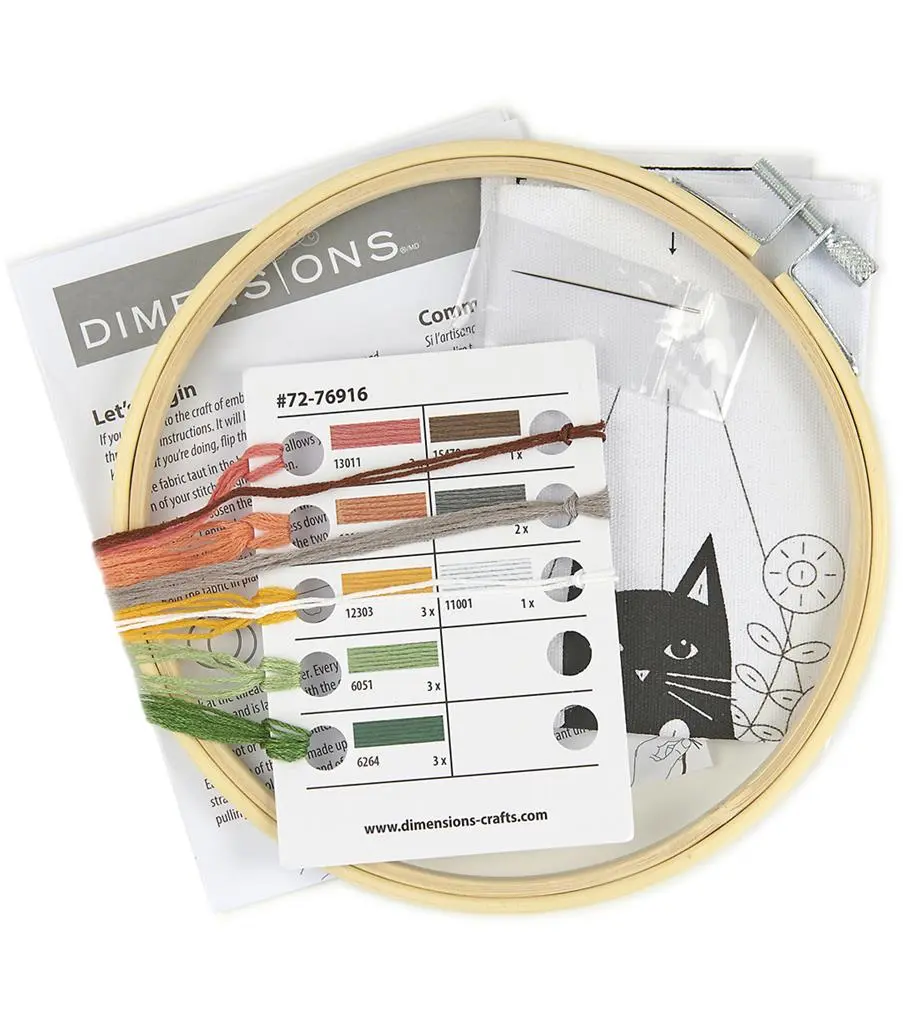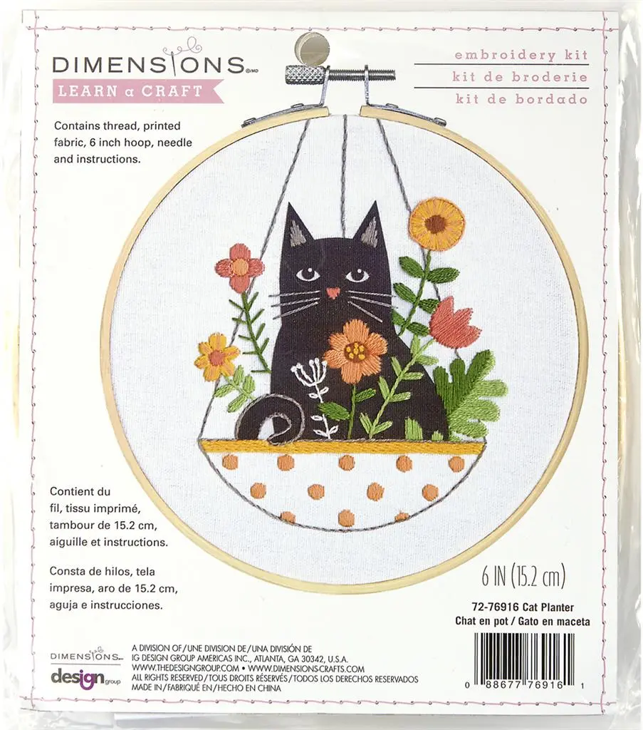 72-76916 DIMENSIONS Learn-a-Craft Cat Plant Needlepoint Kit Cat planter with hoops.