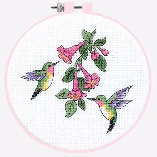 The kit contains: instruction chart, color symbol pattern, Aida 14 (white), cotton mouline Dimensions - 7 colors, plastic hoops and a needle.