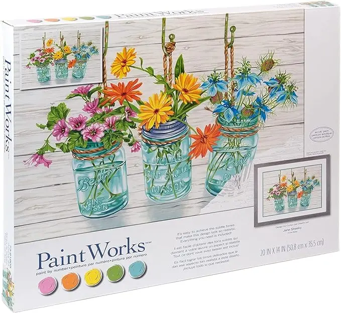 Dimensions Paint by Numbers kit includes high-quality acrylic paints, textured cardstock with pre-printed information, brush and instructions