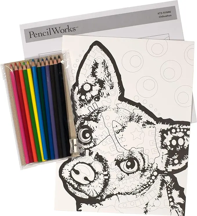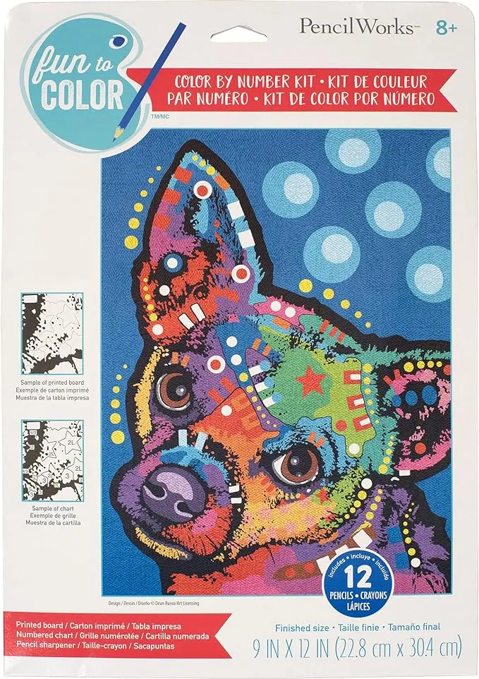 The Pencil by Number Set includes (12 colored pencils), (1) pencil sharpener, (1) chalkboard, and easy-to-follow instructions.