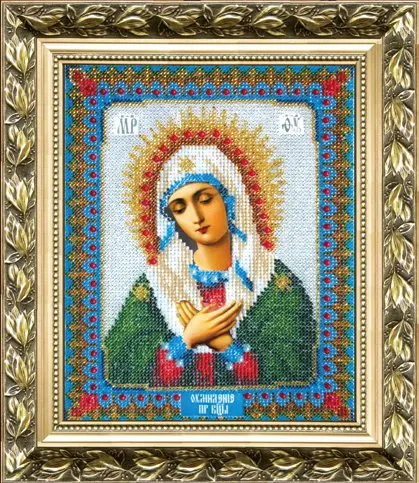 The kit contains: color pattern, instruction chart, printed embroidery cloth, Preciosa beads - 18 colors and beaded needles.