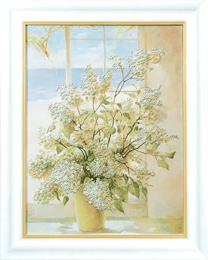 The kit contains: Preciosa beads – 4 colors, mouline Madeira – 3 colors, printed embroidery cloth, beaded needle and color pattern with instruction chart.