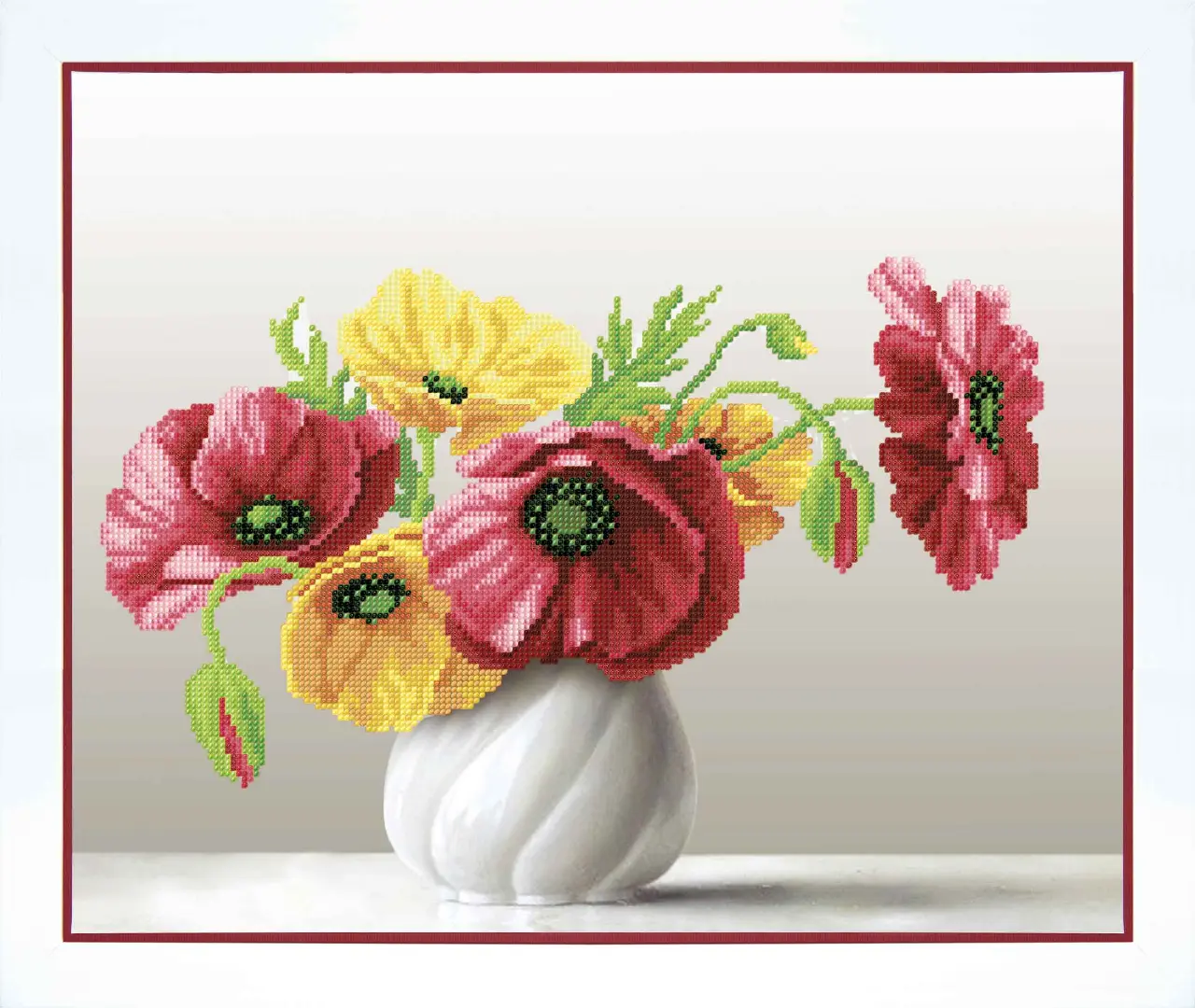 The kit contains: instruction chart, color pattern, printed embroidery cloth, Preciosa beads - 19 colors and a beaded needles.