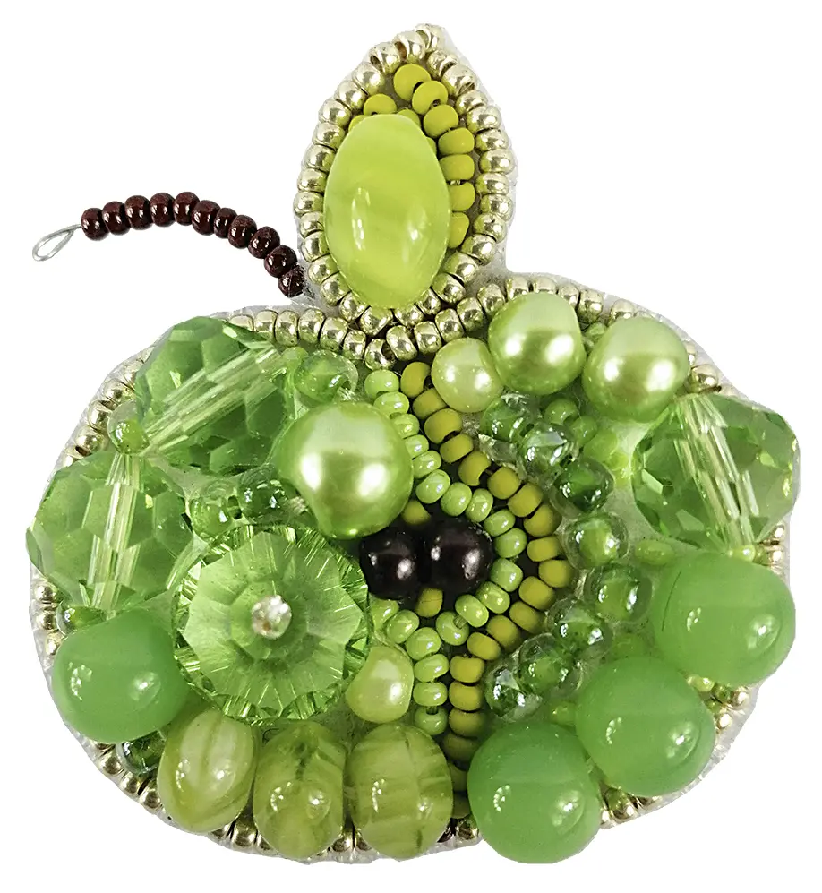 BP-256 Beadwork kit for creating broоch Crystal Art "Green apple"
