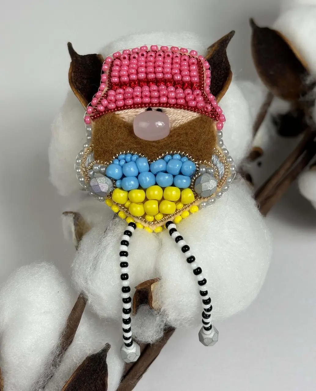 The set includes: instructions, color chart, Preciosa Ornela beads (Czech Republic) - 6 colors, rhinestone chain, wool, Crystal Art beads, thread (only for making legs), fastener and needle.