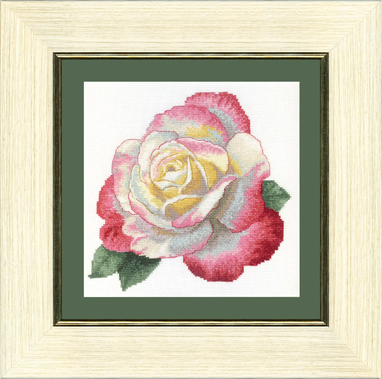 The work is stitched by cross stitch and backstitch.
