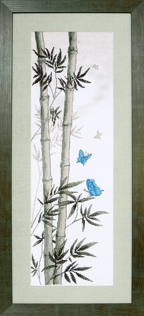 The work is stitched by cross stitch, semi-cross stitch and backstitch.