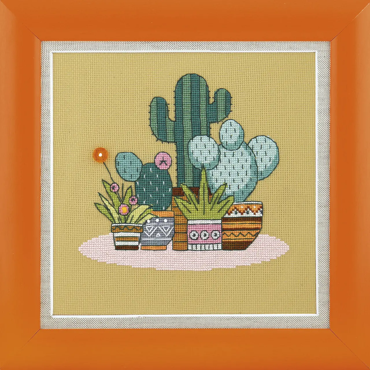 The work is stitched by cross stitch and backstitch.