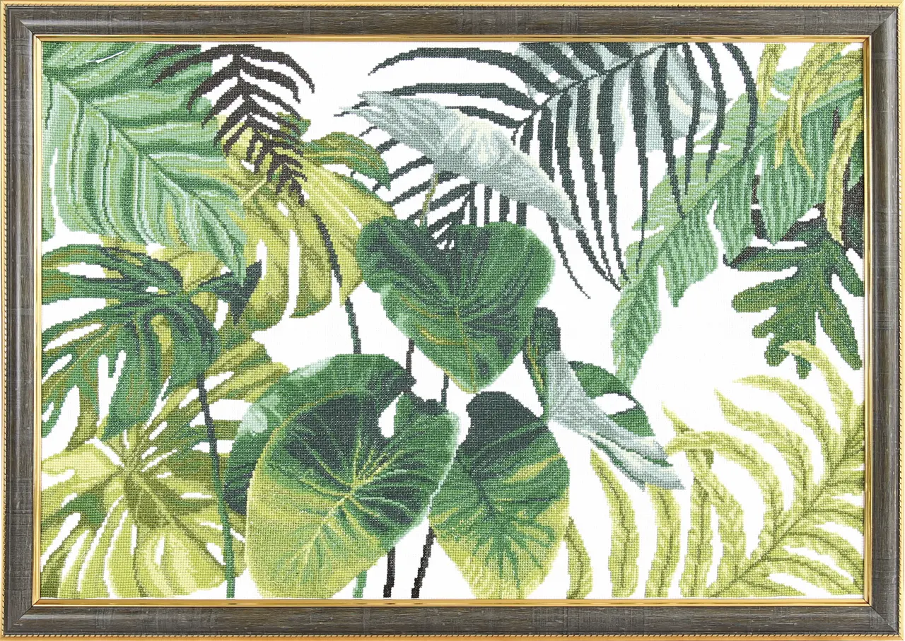 The work is stitched by cross stitch.