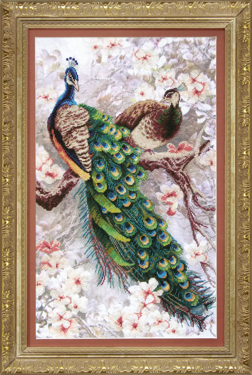 The work is stitched by cross stitch and backstitch.