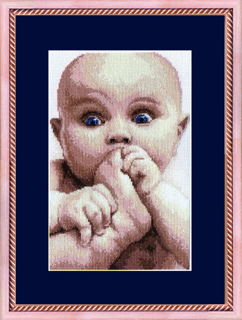 The kit contains: instruction chart, color cross stitch pattern, Aida 16, cotton mouline and a needle.