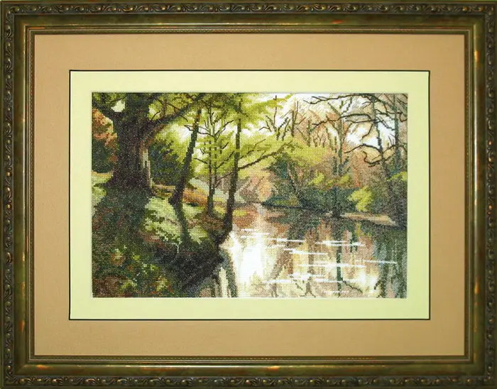 The kit contains: color cross stitch pattern, Aida 16, cotton embroidery threads and a needle.
