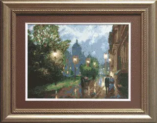The kit contains: color cross stitch pattern, instruction chart, Aida 14, cotton embroidery threads – 26 colors +7 mixed colors and a needle. Stitching techniques are three, two and one threads with cross and semi-cross stitch.