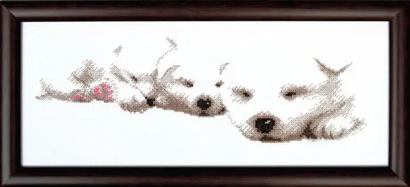 The kit contains: color cross stitch pattern, Aida 16, cotton embroidery threads and a needle.