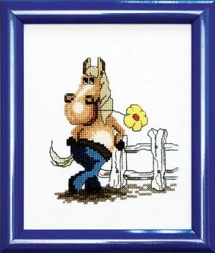 The kit contains: instruction chart, color cross stitch pattern, Aida 14, mouline Anchor and a needle.