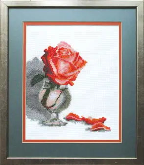 The kit contains: color cross stitch pattern, Aida 14, cotton embroidery threads and a needle.