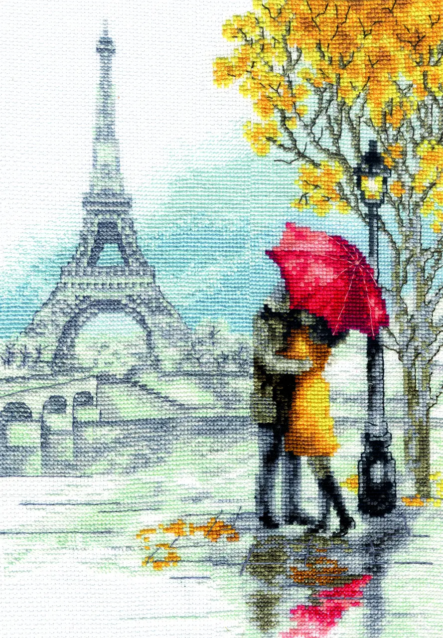 Immerse yourself in a romantic atmosphere with this delicate and elegant design from Charivna Myt. The artwork features a loving couple standing under an umbrella against the backdrop of the iconic Eiffel Tower — a timeless symbol of love and inspiration. The composition conveys warmth, tenderness, and a touch of French charm.Size of the finished work: 17.5*24.5 cm.