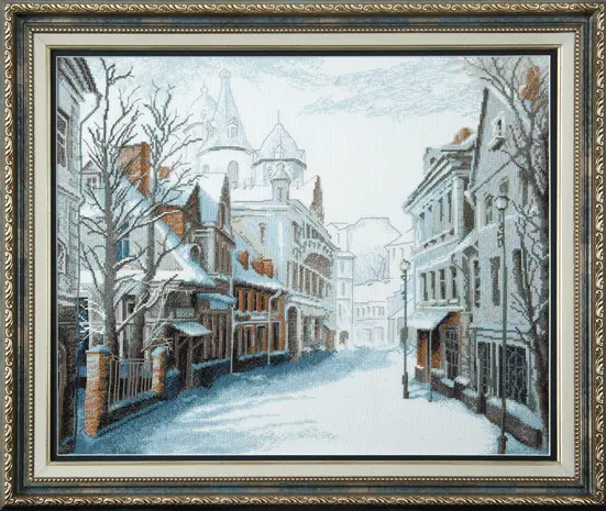The kit contains: color cross stitch pattern, instruction chart, Aida 14 Zweigart, mouline Madeira – 24 colors and a needle. Stitching techniques are two and one threads with cross and semi-cross stitch.