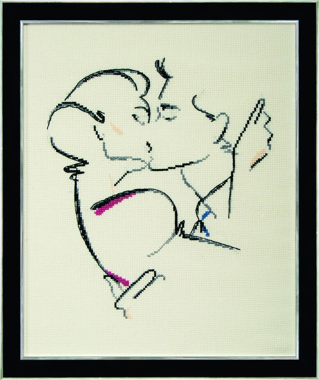 The kit contains: color cross stitch pattern, instruction chart, Aida 14 Zweigart, mouline Madeira and a needle.