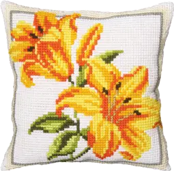 The kit contains: color scheme, printed embroidery stramin, yarn (acryl) and a needle.