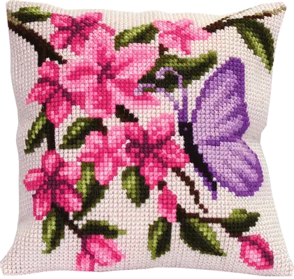 The kit contains: color scheme, printed embroidery stramin, yarn (acryl) – 16 colors and a needle.