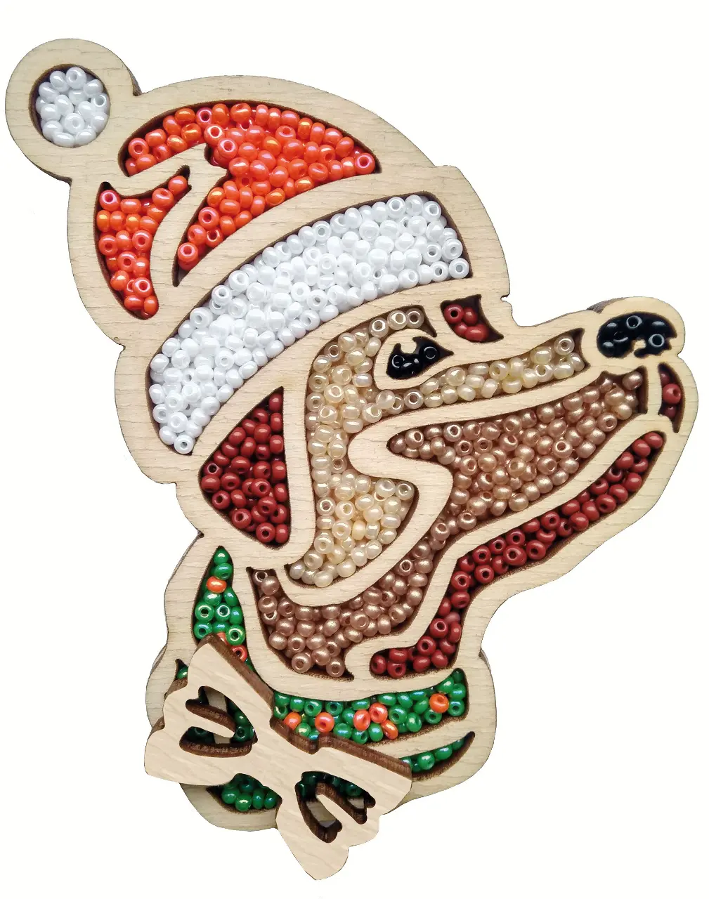 The kit contains: instruction chart, color pattern, plywood and fiberglass blanks, Preciosa beads -