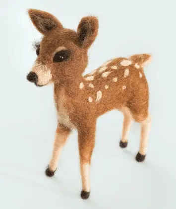 The kit contains: color pattern, instruction chart, Corriedale wool – 3 colors, felting and embroidery needles, Preciosa beads, wire.