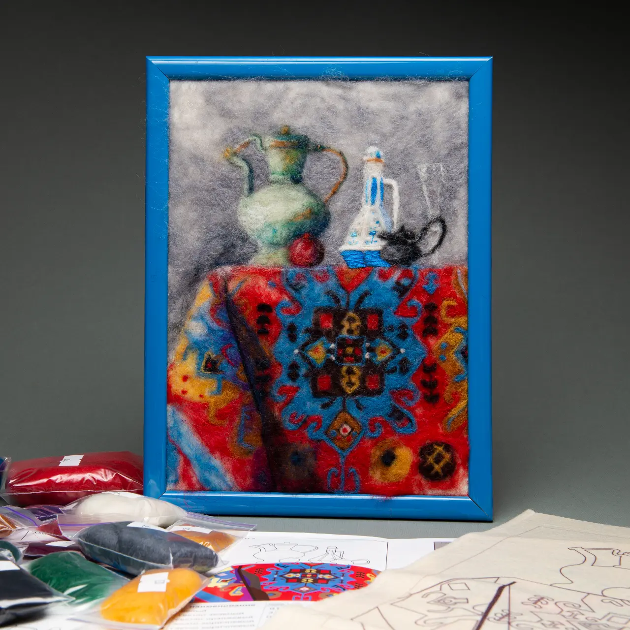 Create a refined and atmospheric artwork inspired by Eastern aesthetics with the Felting Kit V-74 “East”. This design combines graceful lines, warm tones, and traditional ornamental elements, allowing you to craft a piece that feels both artistic and culturally rich.