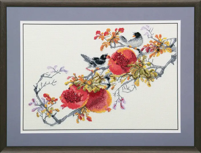 Mixed technique stitch kit M-78 "Ripe pomegranate"