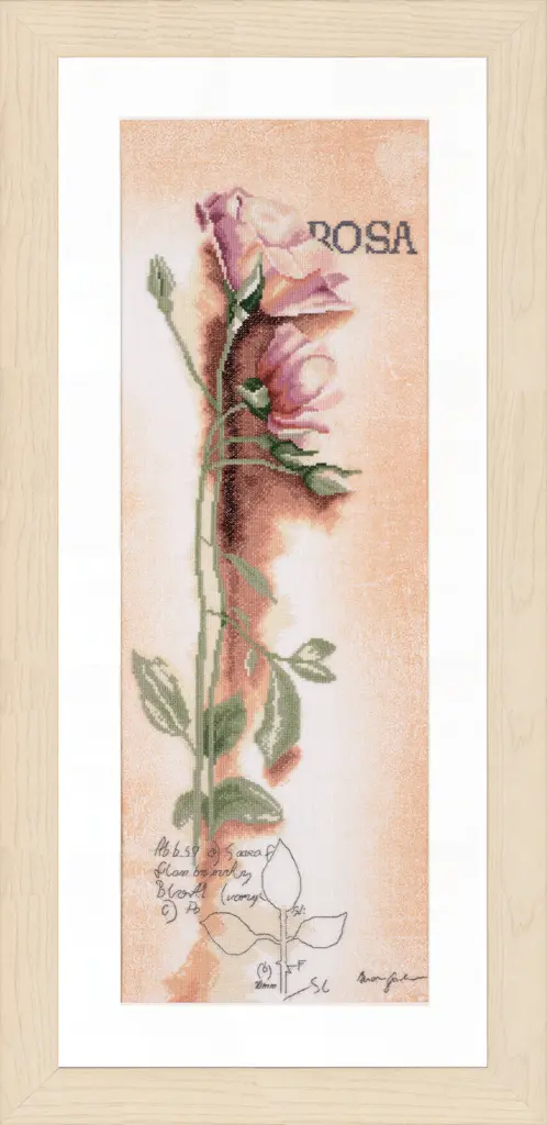 The kit contains: instruction chart, symbol pattern, uniweave Zweigart №30 linen (écru) with printed background, cotton mouline DMC - 24 colors and a needle.