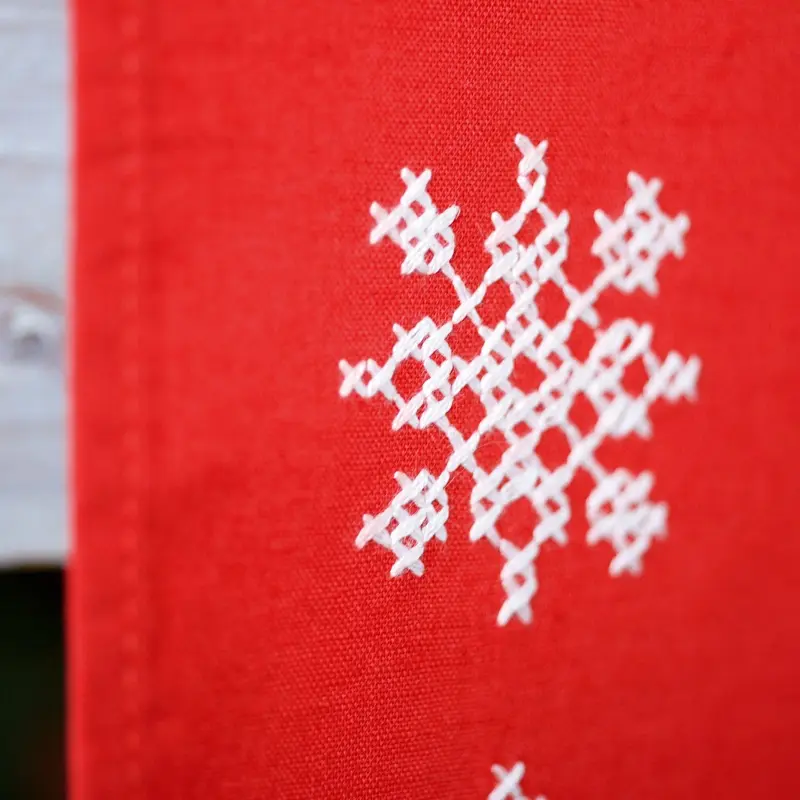The kit contains: instruction chart, symbol pattern, printed embroidery cloth of red color (washable), cotton mouline DMC - 1 color and a needle.