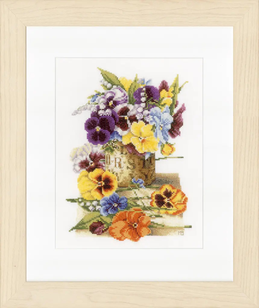 PN-0154464 Counted cross stitch kit LanArte "Pot of Pansies"