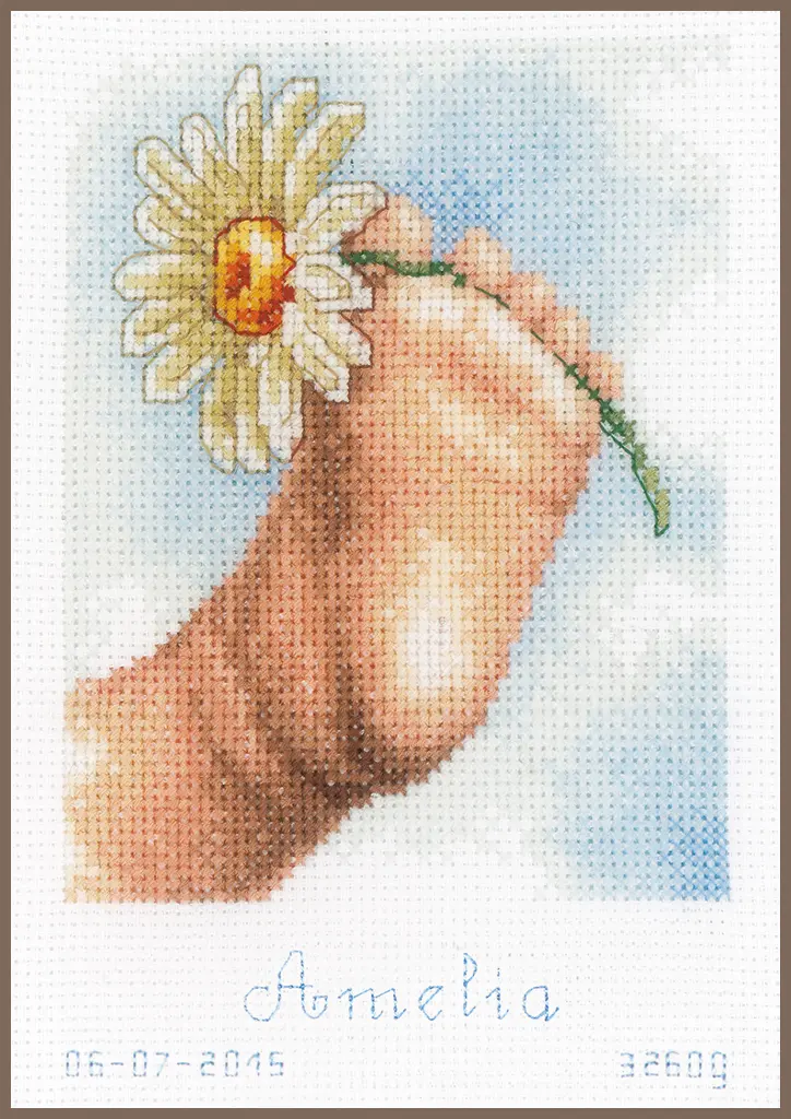The kit contains: instruction chart, symbol pattern, Aida 14 (white), cotton mouline DMC - 22 colors and a needle.