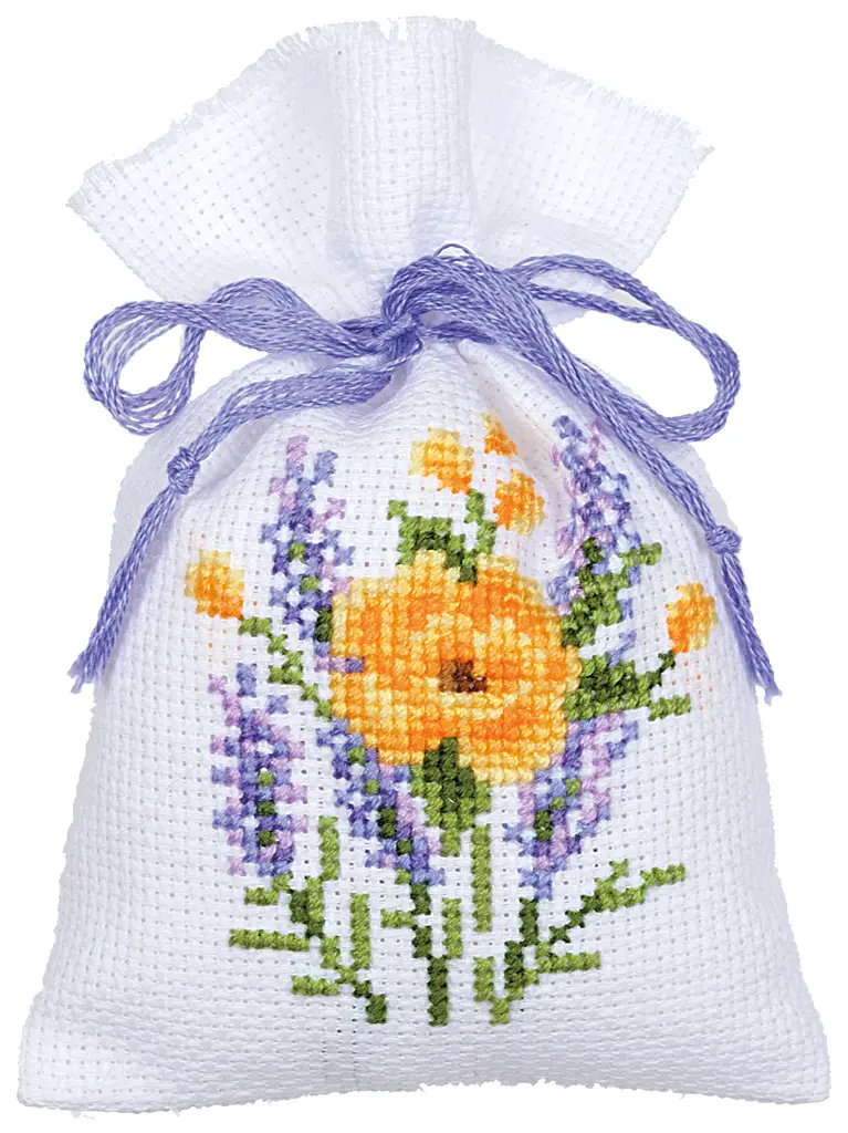 The kit contains: instruction chart, symbol pattern, Aida 18 (white), cotton mouline DMC - 15 colors and a needle.