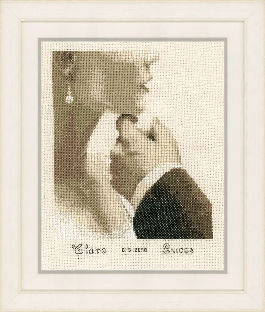 The kit contains: instruction chart, symbol pattern, Aida 14 (light-beige), cotton mouline DMC - 9 colors and a needle.