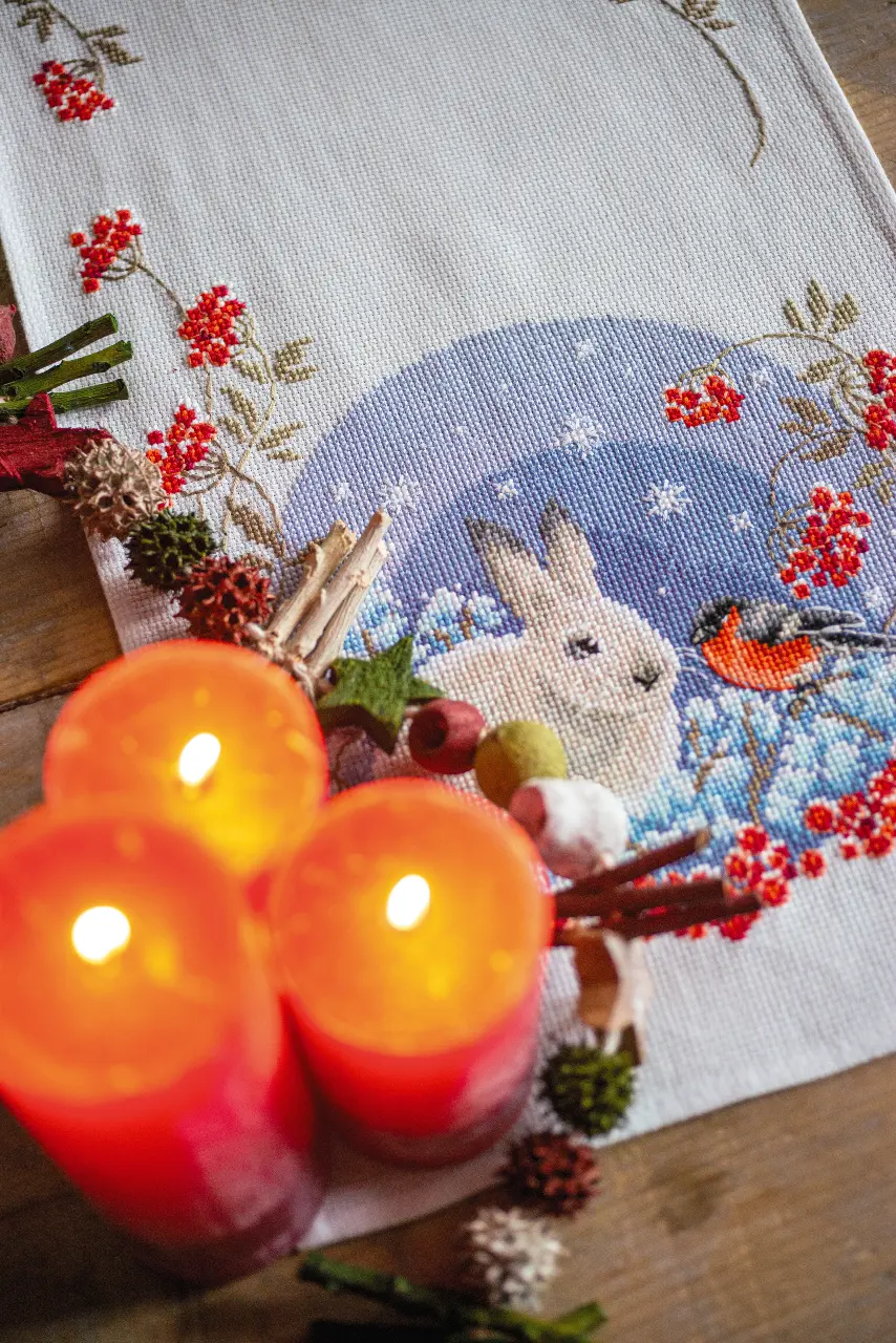 The set includes: instructions, symbolic black-and-white scheme, aida 11, DMC cotton mouline thread and a needle.