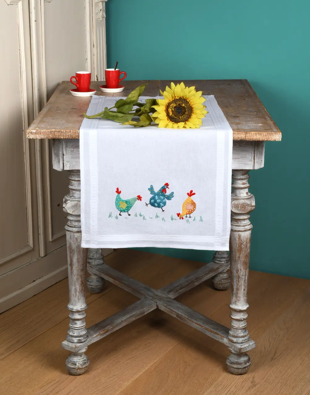 The set includes: instructions, symbolic black-and-white scheme, embroidery fabric with a printed pattern (washable), DMC cotton mouline thread and a needle.