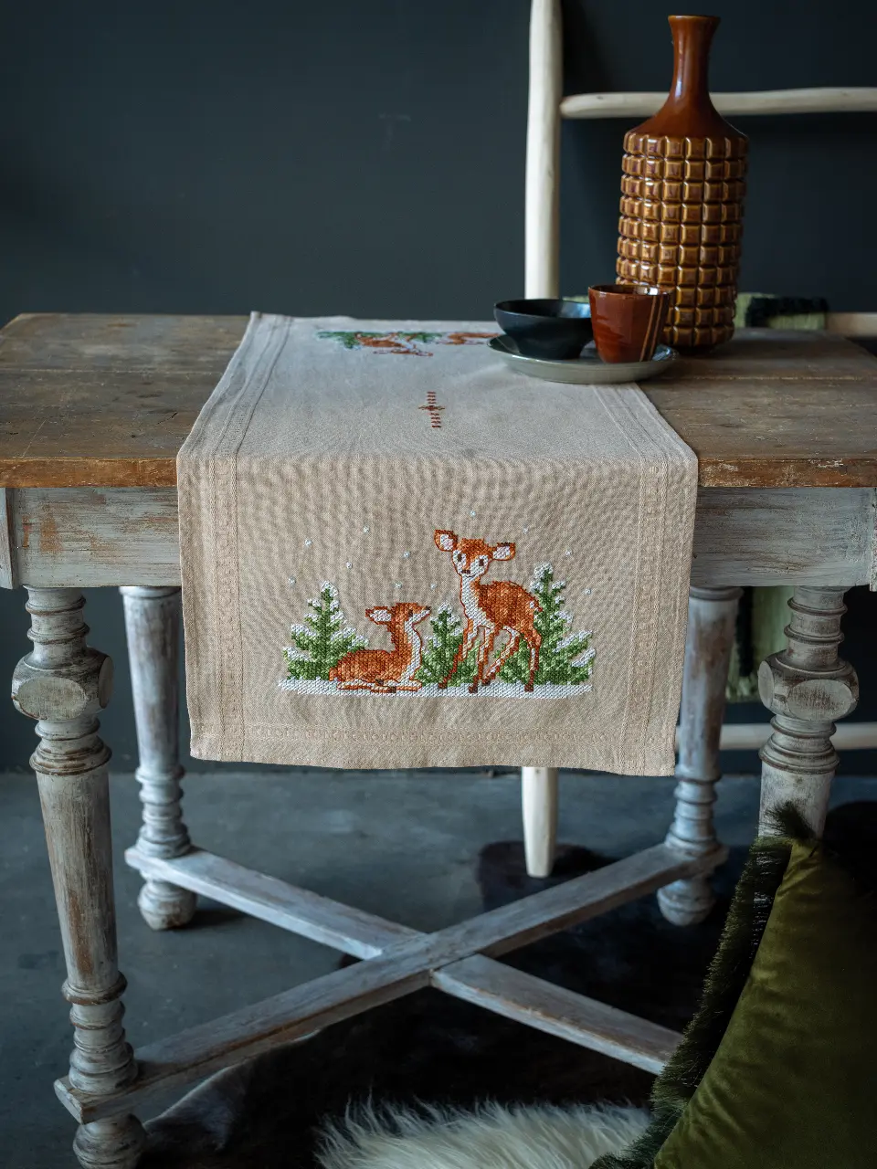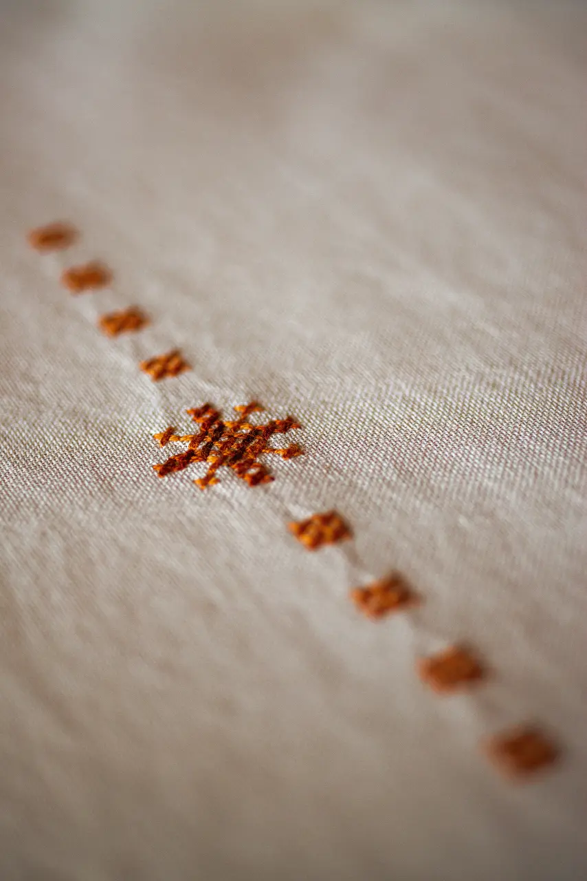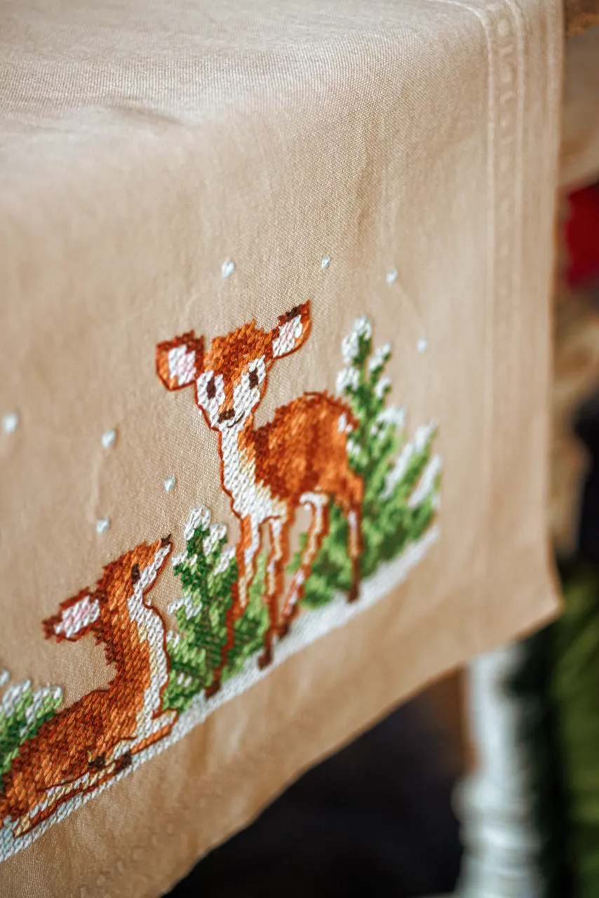 The kit contains: instruction chart, symbol pattern, printed embroidery cloth (washable), cotton mouline DMC and a needle.