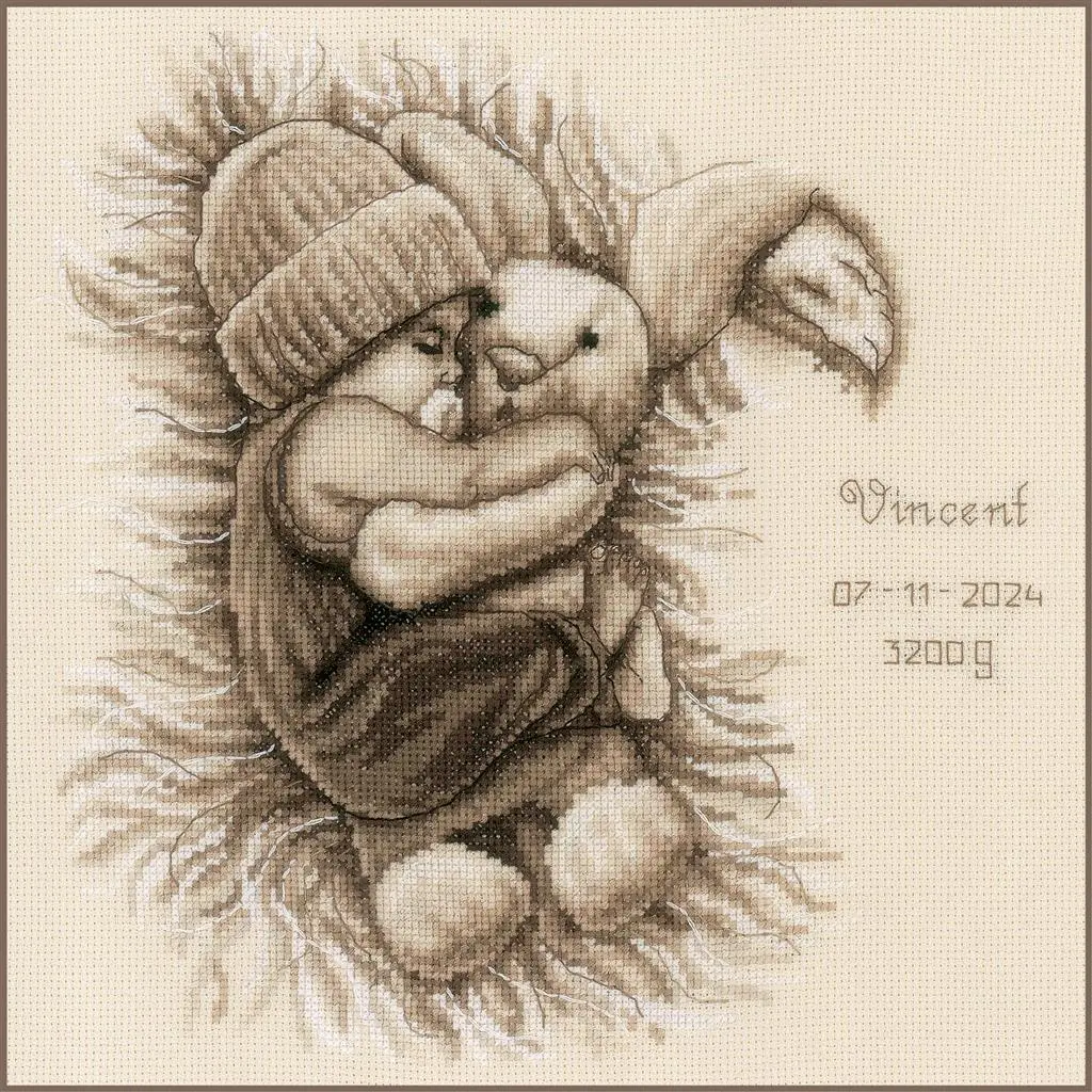 A set for cross-stitching. The set includes: fabric for embroidery: 100% cotton, Aida 14 count; mouliné: 100% DMC cotton; organizer for muline; scheme; instruction; needle. Technique: cross, long line.