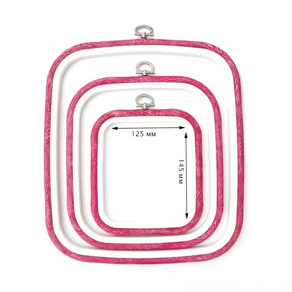 230-11 Пяльцы-рамка Nurge квадрат каучуковые с подвесом, высота обода 10мм, 125*145мм (розовые). Catalog. Embroidery and sewing. Tambour