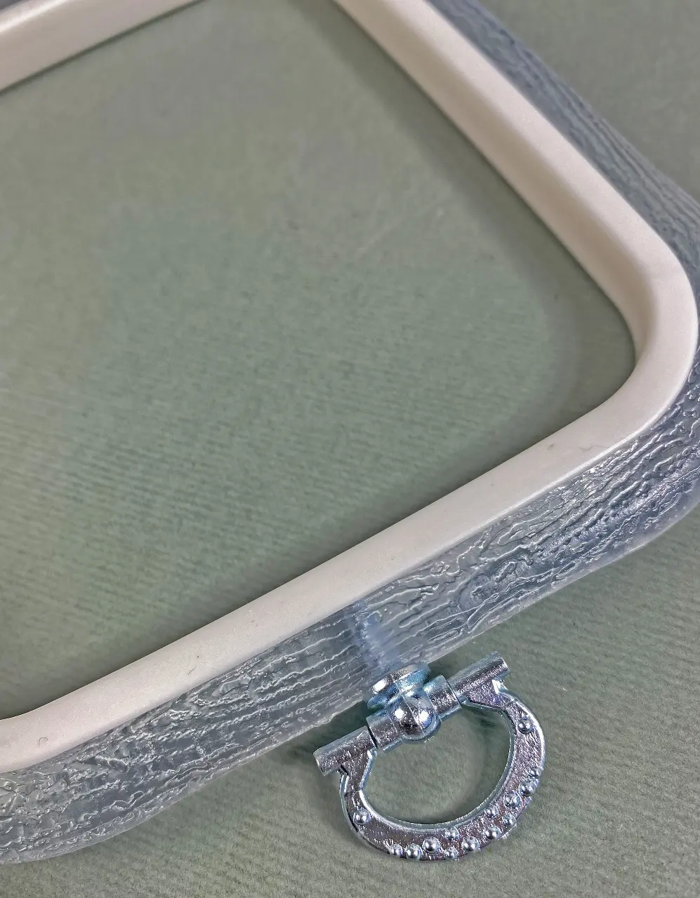 230-11 Пяльці-рамка Nurge квадрат каучукові з підвісом, висота обода 10мм, 125*145мм (перлинні)