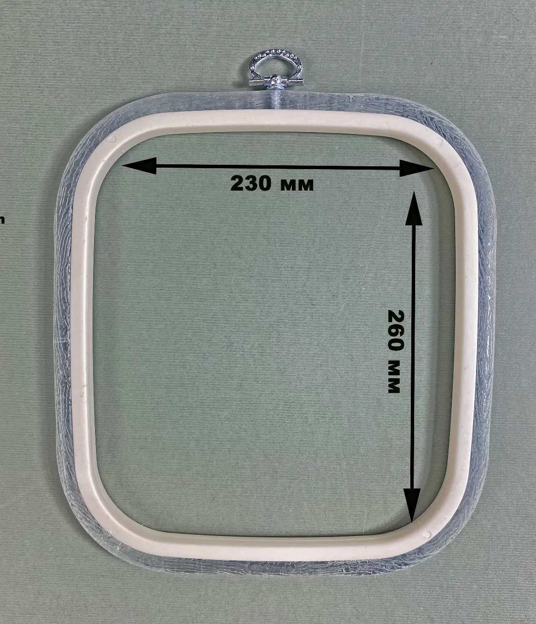 230-13 Пяльці-рамка Nurge квадрат каучукові з підвісом, висота обода 10мм, 230*250мм (перлинні)