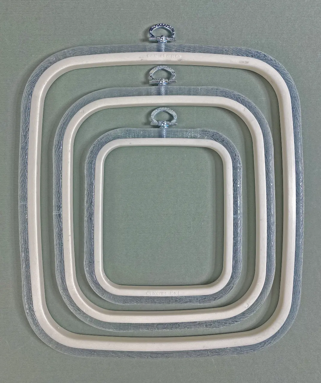 230-13 Пяльці-рамка Nurge квадрат каучукові з підвісом, висота обода 10мм, 230*250мм (перлинні). Catalog. Embroidery and sewing. Tambour