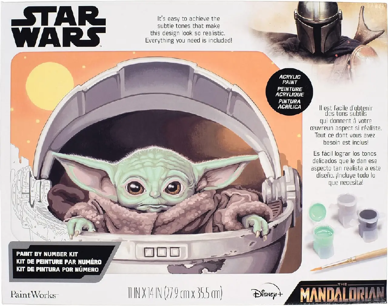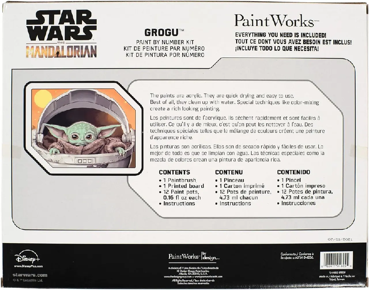 Star Wars Color by Number Kit includes high quality acrylic paints, (1) printed art plate, (1) #1 round brush and instructions/