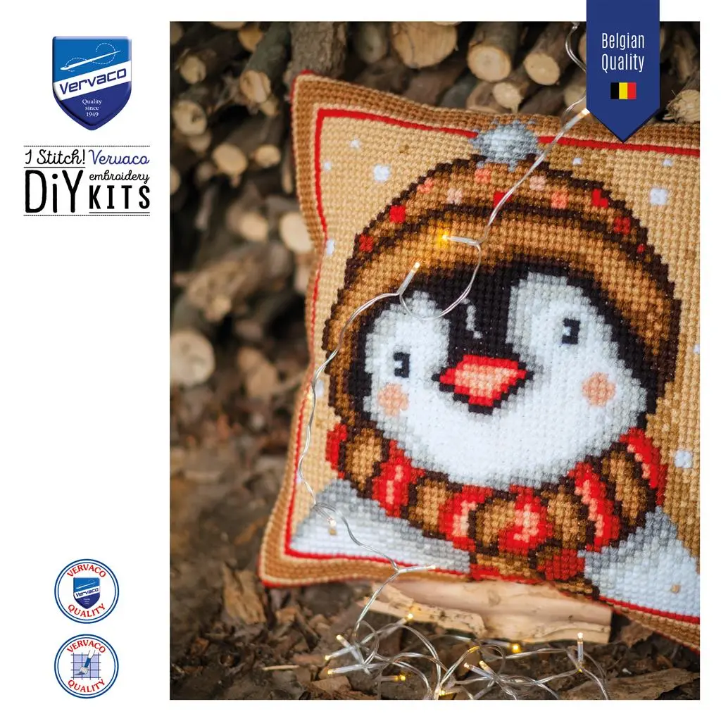 PN-0203343 Набір для вишивання хрестом (подушка) Vervaco Пінгвін
